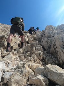 After a morning health check and our daily risk assessment briefing, the group set off towards their main objective which was to summit Corno Grande. Each student was tasked with leading a short leg of the ascent to hone their mountaineering skills and give them a practical leadership opportunity. After many hours of ascent, the group reached their objective and added their names to the book which is kept at the summit in a large metal weatherproof box. Copious photographs were taken to mark the achievement and lunch was spent taking in the views and talking to local Italians who had ascended to the summit from a variety of directions. There was also an opportunity to look at what is left of the Corno Grande Glacier which has steadily shrunk over the last decade and may not last many more years sadly. The descent was full of conversation and the group were clearly on an adrenaline high having reached their objective and each having successfully navigating their own sections. Dinner was devoured in the mountain hut and the group reviewed what they had learned from the day on the exterior balcony taking in the panoramic views and watching a spectacular sunset.
