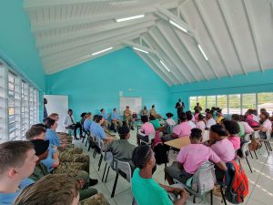 The Cadets wanted to share their experiences as a Cadet, as well as Sixth Formers and College students, with other Antiguan children and so visits were arranged with Princess Margaret’s School and with Antigua Grammar School. Plaques were exchanged and a short service of remembrance was held in front of the Grammar School Cenotaph to commemorate the 12 boys from the school who perished in France fighting with The British West Indies Regiment during the First World War. The Cadets had a lesson with Antiguan children to discuss some of the pressures they felt, and it was extraordinary to hear how the pressures are very similar, despite growing up in very different countries, climates and sizes of population.