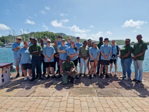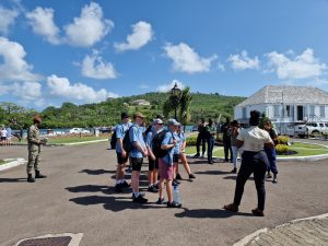 The final day in Antigua was spent sight-seeing the past and the spectacular setting of Nelson’s Dockyard and English Harbour on the south coast, where Nelson spent, by all accounts, a miserable 4 years without setting ashore in what he considered to be a ‘mosquito swamp’ in the 18th century. It is now a beautiful restoration of Georgian buildings, and the Cadets were treated to a surprise lunch in the Dockyard restaurant generously provided by the British High Commission and CDS, Colonel Benjamin. We were very touched and flattered by their kindness shown throughout our stay and the Cadets presented Antigua’s Cadet Force with two return air tickets to UK in order that a senior female and male Cadet can join Cumbria ACF at Easter Camp in 2023. This is a Cadet Exchange with the potential to change lives for the young people of Cumbria and we wish to see it develop further, with a view to returning in 2024.