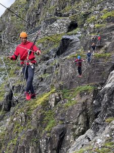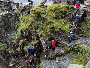 Upon successful completion of the expedition, the cadets joined the crew of ‘Keswick Extreme’ to undertake some of the most challenging and hair-raising activities, Via Ferrata Extreme. All the adrenaline of rock climbing with the added excitement of Burma bridges, cargo-net climbs, and hair-raising ascents up exposed rock. Originally coming from the Italian word for ‘Iron way’ the Via Ferrata has its origins getting troops over the mountains of Italy during the war, now it’s an extreme way to see some of the most spectacular and hard to reach cliff sides and outcrops in the Lake District! Many cadets hesitated to undertake this challenge but as all aspiring leaders, they pushed themselves onto the first bridge and accepted the challenge. There were a few nervous screams from all and words of encouragement heard, which resulted in all team members completing the activity.