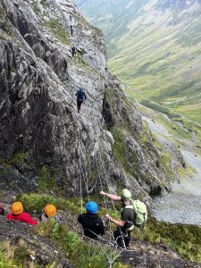 Upon arrival. Something which is hard to get was a visit to the local Mountain Rescue Team. Due to their busy schedule especially during peak times, it is normally hard to arrange a visit however they were able to squeeze the team in! this was a priceless moment for the cadets to learn about mountain rescue and what to do in an emergency, vital especially as they were all beginning their expeditions the next day.