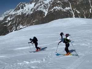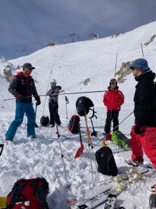 On the remaining days we continued to work on our off piste skiing and had an introduction to ski touring. This included putting skins and ski crampons on to our skis and walking up steep slopes where we learned how to perform up-hill kick turns. We further practised our avalanche drills by individually conducting a simulated avalanche rescue.