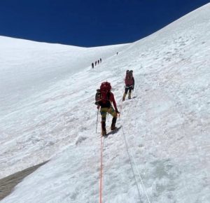 After a very clear but cold night, the team; now split into two Rope Teams, ascended up towards Camp 3 (6500m) as part of our acclimatisation profile and to load carry our final set of rations in preparation for summit day.