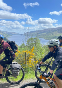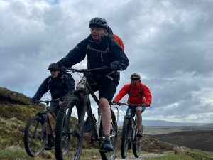 The riding days would be a point-to-point journey that would see the riders riding along the specified route for that day and involve mostly off-road trails and minor tracks. All legs offered their own challenges and although everyone thought that the Scotland section would be the more demanding, it was in fact Leg 1 in the Peak District. This Leg was quite technical in parts, which for some riders meant having to push their bikes up and down the hills. However, the scenery throughout was stunning but once in the Highlands of Scotland it was wild and dramatic as was the weather at times. Where possible the riders would rendezvous with the support team at some point during the day for resupply of food and water and on the odd occasions bike parts to fix some of the breakages they had. Each night the riders would arrive at a new destination and be greeted by the support team. The overnight Accommodation was a mixture of Camp sites and hostels. Riders quickly established an evening administration routine, cleaning and servicing the bikes and getting personal equipment ready for the next day before a hearty evening meal, which was provided by a RAF Reserve chef.