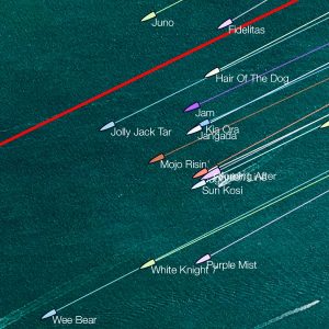 From the start line, there was still a small amount of tide against us, so we stayed in close to the shore and, within half an hour found ourselves in second place as a result. Unfortunately, the A2 spinnaker we were flying tore and we had to slow the boat and send Capt Gerald to the top of the mast to detangle it before we could continue racing. This delay, coupled with the loss of the sail we really needed for the entire outward leg (to the Eddystone) meant we fell well behind the fleet and were unable to keep up.
