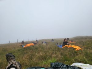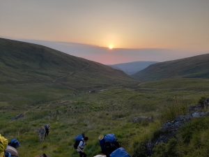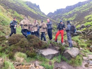 Tue & Wed 19-20 July: The highlight during the period of extreme heat saw the two sections of cadets inserted into a different location in the mountains at 1500 hrs with a mission. The challenge was to climb the forested hills and reach a wild basecamp below a mountain simply marked on the map as 666 (feet above sea level). The following morning saw the cadets waking up, having faced the fury of the midges, on the mist-covered mountain side and scaling the steep mountain, subsequently named “Devil Mountain”. At the summit the cadets had to signal their allied section, on another mountain top, at 1100 hrs using their flags ( The Ulysses Trust and the Outward-Bound Trust flags). Following this there followed an arduous march to rendezvous with the other section at 1500 at a pre-arranged location.