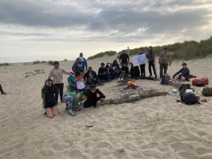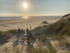 Having returned from their expedition the cadets and volunteers went to the sand dunes running up and down the steep dunes until sunset.