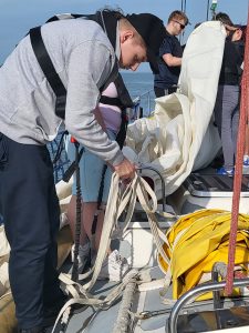 “I’ve loved learning about how the yacht can work from the Skipper. He has answered all of my questions and helped me be able to raise the sails by using the halyards and the winches. I would like to come back as a volunteer to be able to help other people get this same experience” – CCF student.
