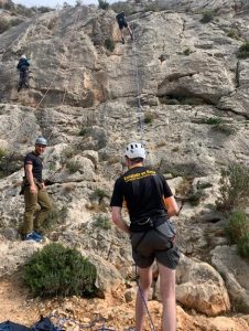 On the third day, 15th February, we travelled to the Vall de Guadar (Echo Valley) area of Calpe to attempt some longer climbs ranging from a grade 4 to a grade 6a – Aero, X.M.A.S., Regaló por Ali and Phantom. Another officer cadet got the chance to carry out a multi-pitch climb in the area – Vía Esther – consisting of 4 pitches and a 100m ascent. We also all completed a stacked abseil on this crag before the day concluded.