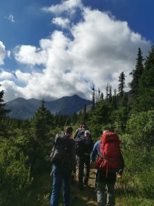 The original plan for the summer mountain foundation course had been to complete the slims river trail and climb observation mountain. This would have involved a number of creek crossings. However, as they say, no plan survives contact and with temperatures at night hitting freezing this meant snow on observation mountain. When combined with high temperatures in the day this resulted in higher-than-normal creek levels that parks Canada staff advised were unsafe to cross, as well as putting observation mountain above the snowline, out of the remit for summer mountaineering. So, for the summer mountain foundation course a new plan had to be put in place. After climbing Sheep Creek on the first day, a long steady climb to an elevation of 1930m offering panoramic views of Kluane Lake, Slims River Valley and 360° views of the countless glaciers which blanket the surrounding mountain peaks. From sheep creek the group moved to Kathleen Lake, allowing for a stop off at the Alpine Bakery in Haines Junction. A recovery walk along the shores of the lake gave the legs a chance to recharge and the initial plan had been to tackle the Kings Throne a steep ascent of 1400m, however the area was hit by winds with gusts of around 70mph making the route not an option, so a 20km walk along the cottonwood trail was completed instead. On the map the route looked relatively flat, but Canadian map contours were every 50m not every 10m like UK maps and the reality was that it was in fact not very flat at all! The weather also turned to torrential rain for the walk which gave the group the chance to test out their waterproofs! On return to the lake the group used the communal shelter/picnic area to dry the kit and WO2 Suresh Gurung treated the group to a camp stove Gurkha curry. The final big walk for the group was the Aurial Trail, another 15km walk through a mix of forest and meadows with an excellent viewpoint looking down to Haines Junction below.
