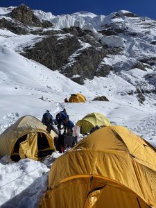 The team then left on their acclimatisation rotation. During this rotation you do not make a bid for the summit. Team members climbed to camp one and spent the night there in order to allow their bodies to adapt to higher altitude before returning to base camp. It was shortly after the first rotation we were faced with an ill team member.