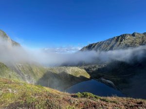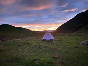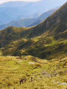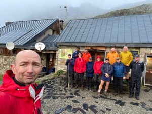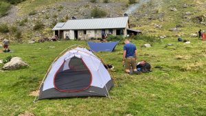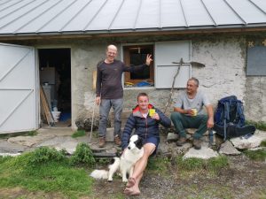 After checking in with the admin team at the Col de la Core, we carried on to our stop for the night at the un-manned Subera Hut, not knowing if anyone else would be there. On arrival we were welcomed by the shepherd who owned the hut who was there with a couple of his family members, and there was also a backpacker from London there who managed to step in as our interpreter for the evening. The weather had got cooler so the fire they had going inside the hut was most welcome, and several us were able to sleep inside the hut while the hardier trekkers camped outside. The shepherd explained that his hospitality was down to the “spirit of the mountains” which stemmed from the plight of the WW2 escapees, and meant that you should offer as much as you can and be as hospitable as you can towards anyone you meet up in the mountains.
