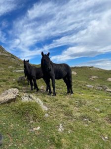 On the way we also passed the site of the RAF Halifax aircraft that had come down on a training flight at the Pic du Lampaou in 1945. The remains of the aircraft were left in situ as a memorial and a plaque mounted on a nearby rock naming those who had lost their lives. Here we paid our respects before carrying on with our journey. We also saw herds of wild horses on our travels, not something we really expected, especially so many of them at such altitude.