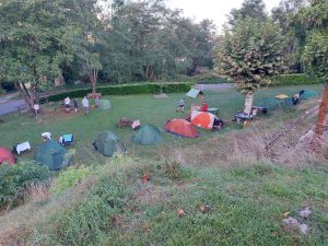 In order to keep within the remit of Adventurous Training, our accommodation, when not travelling, was at campsites. Our first site was the Parc de Paletes site on the outskirts of Saint Girons. Part of a larger holiday park, complete with static vans, outdoor swimming pool (unfortunately out of use now as we were just outside the main holiday season), a restaurant and bar on site, and electric hook-up so we could charge our phones!