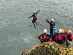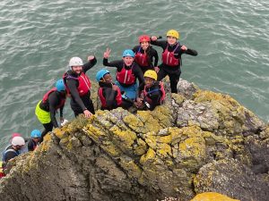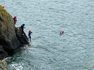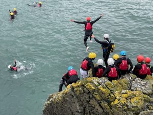 Based out of Capel Curig, the training camp began with a coasteering session on Anglesey, which was a first for all participants! It was an overcast and wet day which didn’t encourage the cadets to get involved. However, the spirit was there and with a little instructor persuasion, the cadets kitted up and hiked down to the shoreline. It was tip toes into the water at first, but once the wet suit started to do its job, the cadets were more than happy to be in the sea. Cadets had to swim from rock feature to rock feature, climbing along cliff edges, and jump into the sea at height. This was an incredible experience for all. For many cadets, leaping from height proved a big challenge and took them out of their comfort zone. The swell was medium but within limits, adding to the adrenaline of the jumps. With encouragement from fellow cadets, staff and instructors, those nervous to jump into the sea eventually did. All cadets took part in all the challenges and jumps. Cadets supported each other with swimming between features and climbing onto them. The activity proved successful, bringing much confidence and comradery to the team.