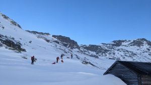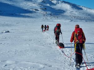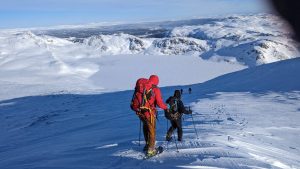 There was also build-up training and testing for the upcoming Ex ATLANTIC QUEST expedition to South Georgia in September. Training objectives focussed on equipment selection and configuration, travelling and sustaining on the hill, and pulk crevasse rescue, as well as an introduction to tasks we will undertake to support climate change research for the Universities of Exeter and Bristol plus the Atlantic Meridional Transect and British Antarctic Survey. Comprising a two day overnight expedition through the scenic hills of Ørnenipa, this was the proof of concept vital to developing comprehensive SOPs for the South Georgia expedition. In freezing blizzards over difficult ground, we quickly figured out what worked and what didn’t.
