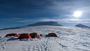 23 Feb 23 – Third day devoted to Ex AQ training, saw the team divide into three rope teams and simulate climbing an objective before returning to the tents and conducting science training. Those not on Ex AQ continued to gain further experience climbing water ice.