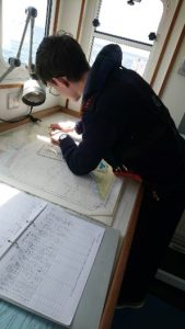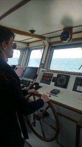 Day 2 Fecamp – Boulogne – Todays tasks were a lot easier as we had better weather conditions for our voyage, we took it in turns up on the bridge in our watches where we completed our duties in helming the wheel, navigation and keeping watch for surrounding vessels, buoys and any other things we could see out at sea. As we arrived ahead of schedule into Boulogne we had the time to go ashore and get an ice cream. Upon arrival back to the ship it was back into our uniforms dinner was served and our engineering class commenced. After this it was shower time and bed for our next full day at sea.