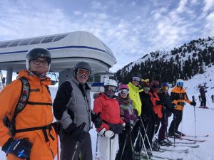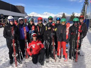 After an early breakfast (and a good night’s sleep) we boarded the coach and headed into town to collect our ski equipment from the rental shop. After donning our ski boots and collecting our ski’s, a short walk saw us entering the turnstile to the gondola. 18 minutes later, we were exiting onto the lower section of a groomed piste. This was to be our daily meeting area where each instructor would greet their group prior to venturing out and tackling the various runs.
