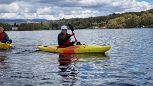 We started day 2 the best way possible – with bacon sandwiches – then met our instructor Liam who briefed the group on their respective activities. One group would be sailing and the other group would also be on the water in various other crafts. Once everyone was (wet) suited and booted up we took a short steep walk down to the waterfront. Mrs Connor’s group chose their crafts which consisted of sit-on-top kayaks, stand-up paddle boards and single-seat kayaks. The group paddled all the way across Windermere and played lots of games on the West side.