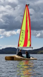The sailors rigged up their sailboats with help from instructor James and seasoned sailor cadet Watson. There was not much wind to speak of but there was just enough for the sailboats to get going and go on a little adventure zigzagging across the lake. On the way back some of the paddling group opted for a tow and some even decided to go for a swim. A couple of the sailing boats volunteered to do some capsize drills which saw them tip their boats over and then flip them back the right way up. Considering the water was 4°C and the air temperature was 8°C this was an impressive feat. They even opted to jump back into the lake from the jetty after all the boats were put away. We all squelched back to the bungalow for some lunch, hot drinks and hot showers.
