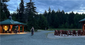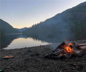 The owner of the general store was renowned for bike fixing and was incredibly generous with his time and resources, helping us to repair broken panniers and other bike issues. Fortunately, we were staying next to the Scarlett Ibis, Vancouver Island’s most remote pub. In the evening we built a fire and had marshmallows before some of us stayed in cabins and the others camped.