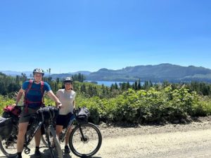We arrived at the campsite situated on the shores of a mountain lake surrounded by forest. There were signs of bears in the area as seen by claw marks, so we took extra precautions to tie up food and use facilities further from the campsite. After 3 days of cycling for longer periods than we expected, it was lovely to arrive at the lake at 4pm so we could enjoy the water before sunset. After setting up camp we swam, ate and fished before calling it a night. We had a group discussion about how we were feeling physically and mentally to plan the next few days of cycling appropriately.