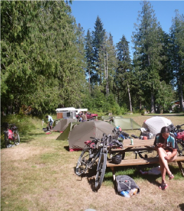 We left Woss Lake at 7am to cycle to Sayward Junction, which was 73 km away. At Sayward Junction we were staying at the White River Campsite.