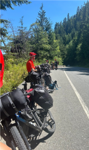 Today, we cycled from Atluck Lake to Port Alice. There were very high temperatures upwards of 25 degrees, with some of the highest gradient hills any of us had ever cycled up. Actually, glad we got another early start.