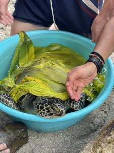 At 11am we finally arrived in Guadeloupe and as I was dropping off T on shore to clear customs, I spotted a turtle who didn’t look particularly happy and was floating on the surface. I rushed to grab some of my crew mates and we rescued the turtle, managing to get it sent off to a vet where it was communicated with us that it has now been put in an aquarium to recover! We all spent the rest of the day exploring the local town, foraging fruit, swimming and G even caught a fish which he later cooked and we all tasted! S and B Sr even went for a run to the other side of the Island – forgetting how quickly the sun sets in the Tropics and not taking any torches!