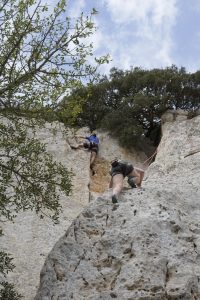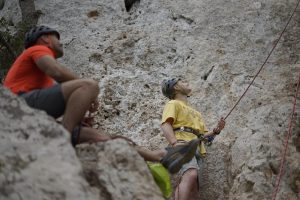 Expedition: The first days of climbing featured climbs with the grades ranging from 4a to 5a. The climbs enabled those students who were inexperienced to ease themselves into the world of outdoor sport climbing. The emphasis was to learn and practise the correct, safe techniques for belaying and setting up oneâs harness. As such, all students were taught how to tie-in using a âre-threaded figure eightâ knot, how to correctly setup a belay using a belay plate and carabiner and the correct belaying technique: âV to knee, one, two, threeâ. Before too long, all students were competent and confident in utilising these techniques, carrying out buddy-buddy checks on their climbing partners and climbing more autonomously.