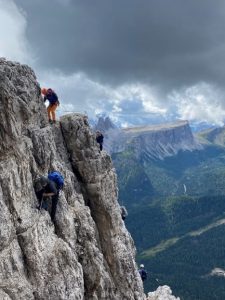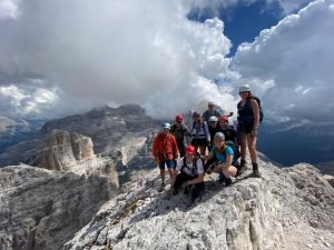 Climbing: Cinque Tori is a favoured climbing location within the Ampezzo valley with its many easy routes suited to teaching those new to the multi-pitch climbing before venturing on to the more challenging Falzarago Tower and Lagazuoi faces. Cortina also boasts one of the best climbing walls, Cortina 360, located in Cortina d’ Ampezzo and was used to introduce students to sports climbing on one of the wet days.