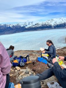 A well-deserved later start (slightly) and a shorter route day was a nice treat. This allowed the group to fully appreciate the scenery and ‘miradors’ as they walked around the edge of the mountain, following the glacier for miles. Arriving in Paine Grande early afternoon, meant they could fully make use of the larger camps facilities. Hot chocolate (not made in a jet boil!) and a meal from the restaurant (also not made with a jet boil!) was very exciting, and expected of 13 British soldiers, the buffet was absolutely rinsed. Blister tally remains at 5, no further losses, broken boot was retaped.