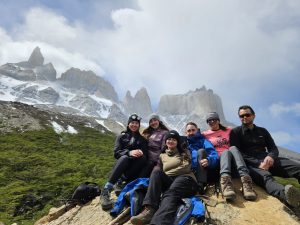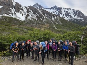 After negotiating two flights, the group arrived in Puerto Natales which was their base for the start of the trek. Here the group got to work as a team to organise their weeks food with ‘porridge bagging conveyor belt’ and trail mix bagging station and attempt to fit their rations, tents, sleeping systems, personal and group kit into their rucksacks. ‘ When we all picked up our bags on the first day, mine weighing in at 25kg, I think we were all aware that we were going to be carrying them for 160km over the next 8 days, and that this may well be quite a difficult task.’