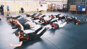 After a quiet breakfast, paperwork was checked and signed, and the course instructor, John, was introduced. The cadets, now under the watchful eye of John, entered the Army Adventurous Training Air Wing, a large hall filled with rows of lockers and covered in thick matting. They made their way to Classroom 1, the scene of their first training session.