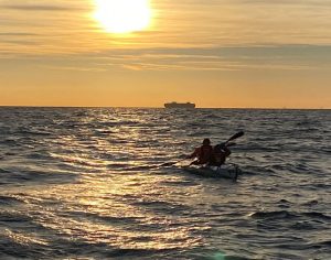 As night was beginning to fall, we noticed that the sea was getting rougher. The canoe was being pushed around a fair bit and the resupply process became more difficult with 40 Love bouncing up and down, but we wrapped up with some great equipment, we were being extremely well looked after by the safety boat crew, and we pushed on as hard as we could.