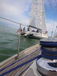 The same calm conditions extended into Day 2, which saw individual skippers given the freedom to explore the Solent area and conduct whatever sailing serials they felt best benefited their crew. Given the calm conditions an upriver navigational exercise was a popular choice before heading to Cowes for an overnight stay and social occasion. The course was treated to a barbecue with exceptional views over Cowes Harbour and the Solent which framed a beautiful sunshine, which did a fabulous job of lulling people into a false sense of security for the following day.