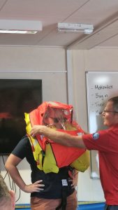 Expedition: Day 1 is traditionally ‘shakedown day’ where those who are new to sailing are put through their paces in the form of a series of standard and emergency drills – everything from raising and lowering sales and basic steering to man overboardsand reporting emergencies. This was conducted in very calm still conditions.