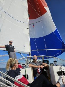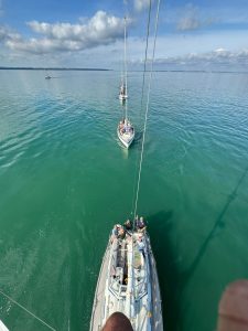 Day one was once again ‘shakedown day’ where those who are new to sailing are put through their paces in the form of a series of standard and emergency drills everything from raising and lowering sales and basic steering to man overboards and reporting emergencies. This was conducted in very calm still conditions. Although later in the day a sea breeze allowed the crews to put their newfound sailing knowledge to the test in more favourable conditions.