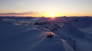 That evening the team undertook a sunset tour, starting at the ski resort we had skied the previous night and completing a very quick 500m of vertical ascent to ensure we arrived at the peak before the sun went down. The views were stunning, captured on drone by instructor and drone pilot extraordinaire Captain Will Brant, and the tour was most definitely an early highlight of the trip.