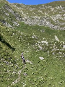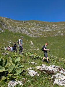 Thursday 22nd August presented a glorious day of Swiss summer weather. The cadets faced another challenge as a result, managing themselves in warmer conditions. In turn, this challenged their understanding of climate and how many different weather systems they had experienced since their arrival. Hiking through the Brecca valley to the Col du Chamois, reaching heights of 1800m, the cadets were able to demonstrate how much fitter they had become over the course of the trip, and how well they had acclimatised, as they made comfortable work of the challenging route. Exploring the valley, which had been carved out by glaciers, they were able to gain insight into how active but environmentally diverse it had become. Whether it was the discovery of more flora and fauna in this valley, which was beautifully celebrated by the abundance of great yellow gentian, known for its medicinal properties to treat digestive problems or the presence of the “herd guard”, dogs living in the mountains to protect livestock.