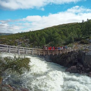 The first full day dawned slightly brighter and drier, so we headed out for an acclimatisation walk up the saboteur’s path under the Krossobanan cable car up onto the edge of the Hardangervidda and back, which blew away a few cobwebs, before we headed into town for lunch and the challenge of buying expedition food in a Norwegian supermarket. Food shopping successfully negotiated, we headed back to the campsite for last minute packing and kit checks.