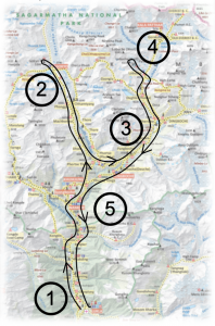 5 Apr – 12 Apr 2025: Once established on the trek, the team spent a week gradually gaining altitude up to Gokyo (4750m). On our second attempt, 10 OCdts summited Gokyo Ri (5357m) in the best weather window of the trip so far. However, progressing over the Cho La Pass as planned was too ambitious for the group as a whole, so the team reversed the route back down the valley.