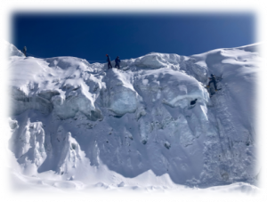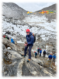 13-16 Apr 2025: The expedition exploited the Everest Base Camp trail to move rapidly around to Lobuche East. After days of patient negotiation with the Mountain Guides to work on different dates, the full team ascended to the colourful tents of High Camp (5300m). On arrival, the team received some training on fixed lines, working on snowed-up rock above the Camp. After some Dal Bhat, 0100 was agreed as the step off time.