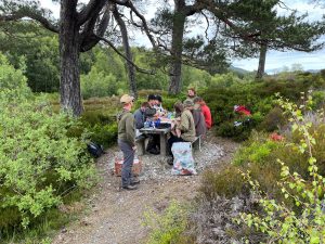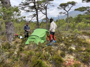 We met the support team at the River Affric FLS Car park, tents were picked up and the wild campsite set up. Back at the car park, rations were issued and the picnic benches were used for evening meal and to get personal admin sorted.