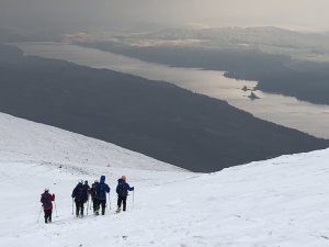Scottish Winter conditions can be as challenging for navigation and keeping oneself warm and dry as anywhere in the world, showing the value of good clothing and equipment and the need to wear and look after it (and each other):