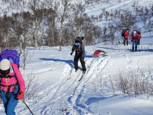 After some fast paced training from the expert instructors (thanks to Jerry, Bill, Paul, Glen, Brent, Topsy and Jim), it was time to prepare and head out on the three day expedition – a significant but achievable undertaking. The long and uphill first day tested both individual endurance and collective teamwork, especially hauling the stores pulk.