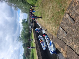 On Saturday 26th July 2025 at 0900hrs, 7 cadets from TS TIGER joined 11 other cadets and young adult volunteers on their D of E qualifying rowing expedition. Out of those 7 from TS TIGER, 4 cadets were on their silver qualifier and 3 on gold. The participants prepared their boats and loaded their kit, had a briefing and set off on their journey in one ASC and three Trinity 500 rowing boats along the River Soar and Grand Union Canal. The teams set off in good spirits despite the wet weather and were enjoying putting all their training into practise with their expedition aims in mind. They worked their way through the 6 locks North of Leicester until reaching their campsite on Broome Island at 1630hrs. They set up camp and cooked their evening meals as a team.