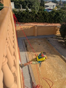 A quick Google Earth recce found the correct property and identified weaknesses in the perimeter. With all 16 expedition members dropped off outside the gate, some of the greatest collective minds of the Rhondda, Llyn Peninsular, Yorkshire and Runcorn were able to figure out how to get inside for the night. The next morning, some of the most innocent looking were dispatched to go to the booking office to collect the keys and act all surprised when the property was pointed out on a map. The rest either went shopping or got the bus to go and pick up the hire cars. This then allowed time for one of the instructors to round up the beginners and take them through all the basics of climbing, using the perimeter wall and balcony uprights to demonstrate all the rigging and processes.