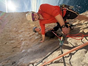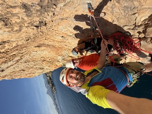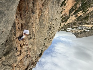 The next day it was time to ramp things up. The 4 most capable students were selected to go on an adventurous multi-pitch climb. While the rest went to a new sports venue with long 30m routes, requiring good stamina and a solid head for heights. This was all in the Mascarat Gorge. The sports routes are newly bolted, but with friends in Spanish places, we were able to get hold of a topo with the routes on. While the guide suggests having a 70m rope, we thought we’d get away with it on rope stretch (with some knots in the ends). As it turns out, 60’s worked fine, but with a little rain and erosion 70’s will be needed. This was a good opportunity to talk the students through the risk management processes that the instructors go through. Explaining our thinking and mitigations to keep ourselves and the students safe, while still achieving the day’s goals.